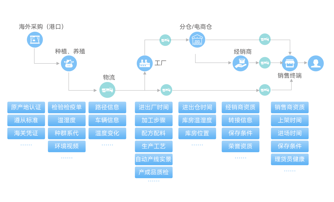 企业业务环节长(采/供/产/储/运/销/服)、产品本身有保质期、渠道通路多杂等加剧食品安全监管难度,且结果还需满足不同参与方(如政府端、监管执行方、消费者)不同侧重和精细程度的监管诉求
