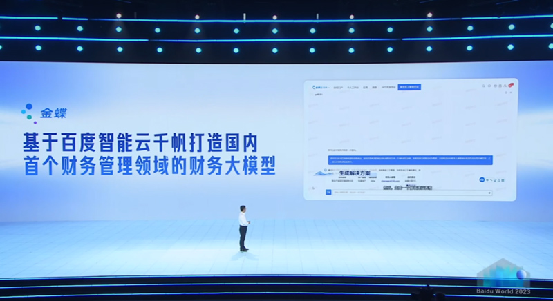 会上,百度集团执行副总裁、百度智能云事业群总裁沈抖在主论坛上重磅展示由金蝶云·苍穹GPT打造的国内首个财务大模型实际应用场景。并以金蝶云·苍穹GPT财务大模型为精选合作案例,为与会者讲解行业大模型落地在财务领域的高价值应用场景。