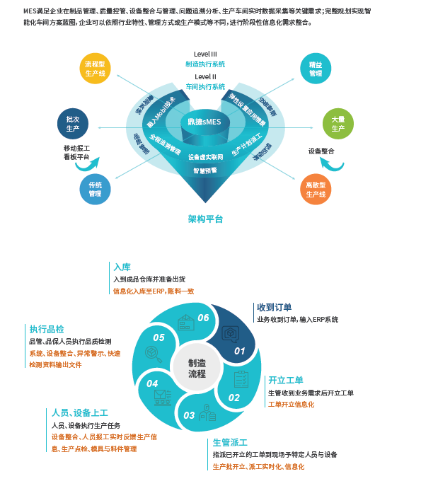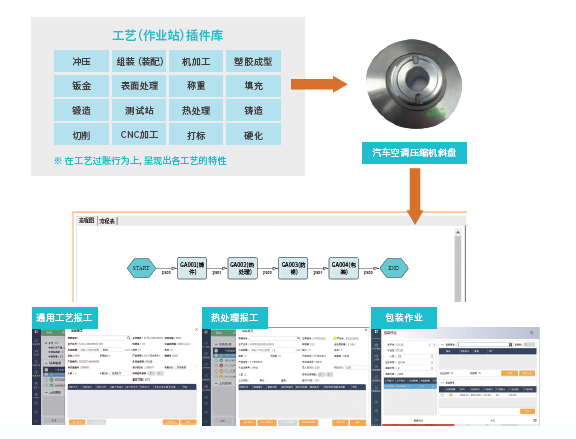 设备派工管理方法、作业站进出站管理方式、产品流程管理、重工管理、分批并批管理、制程或作业站间的单位数量转换及产品部件序号规则等。